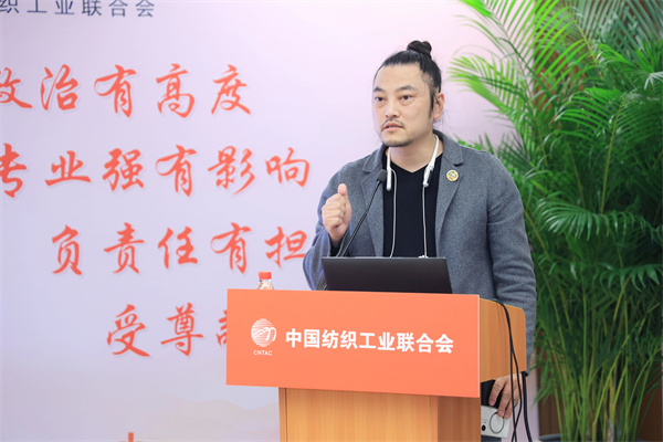 中国纺联社会责任办公室副主任胡柯华作主题为“纺织产业绿色转型的政策与实践进展”的专题分享。