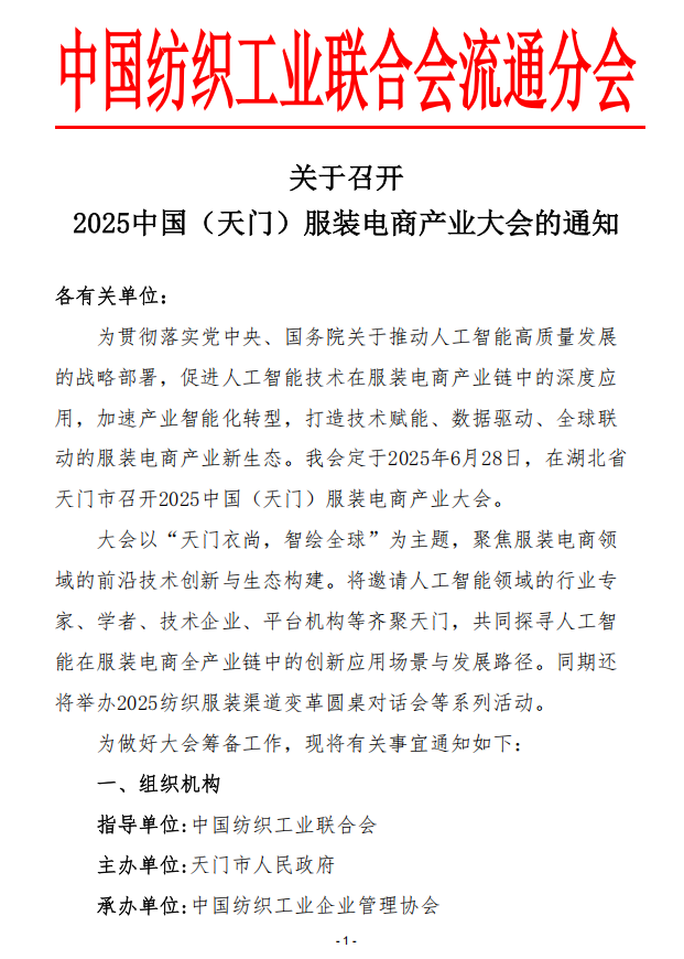 关于召开2025中国(天门)服装电商产业大会的通知