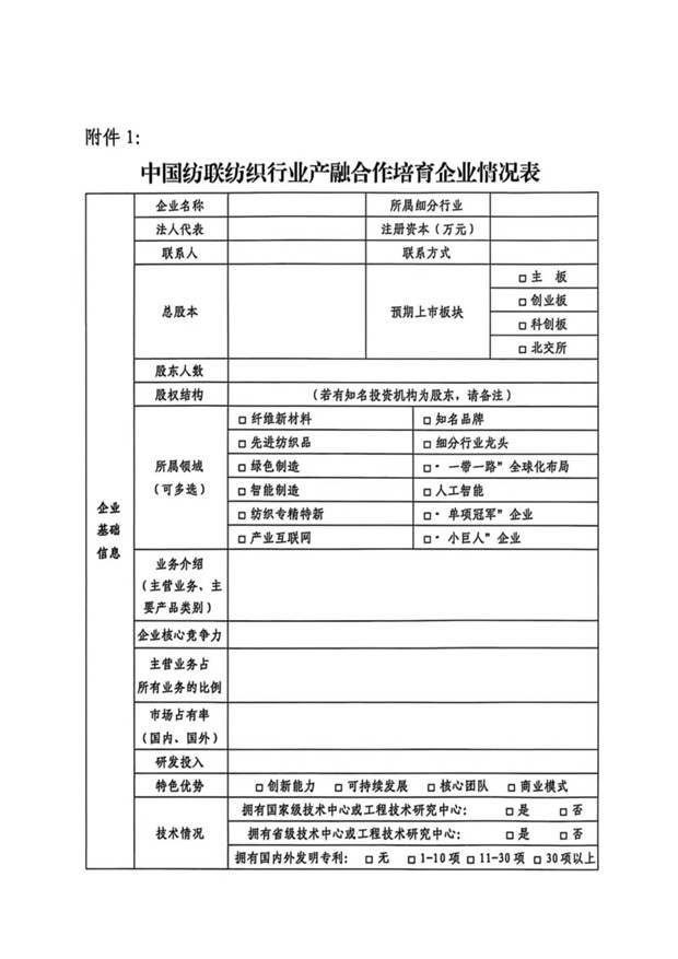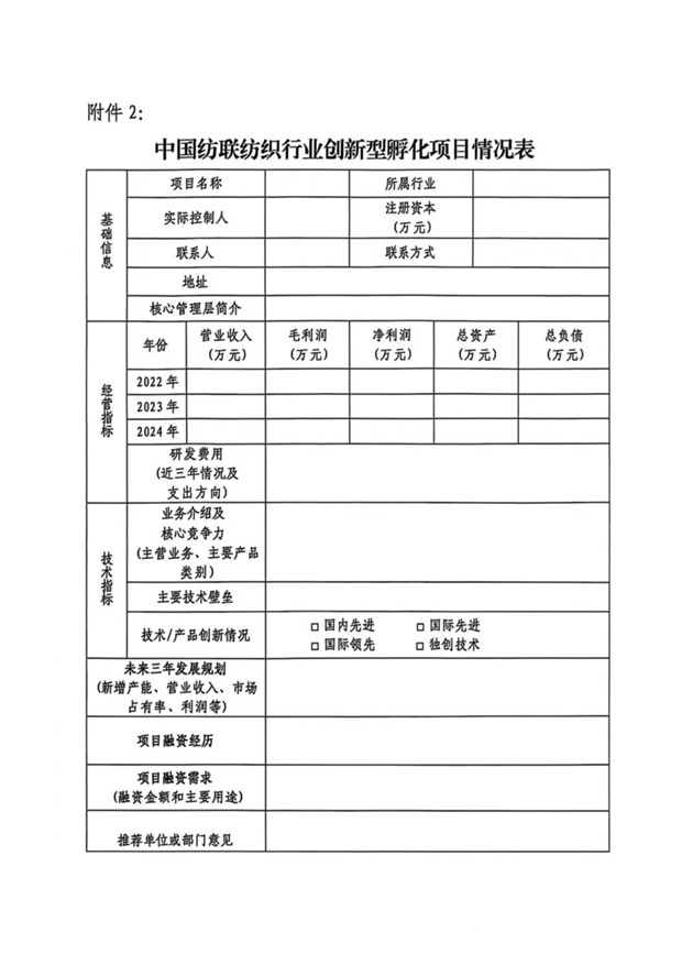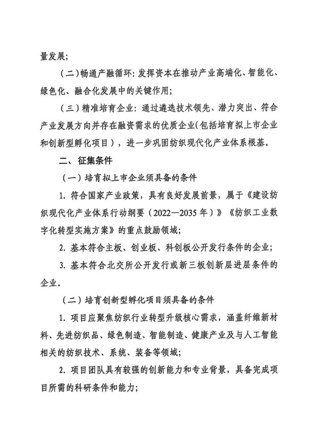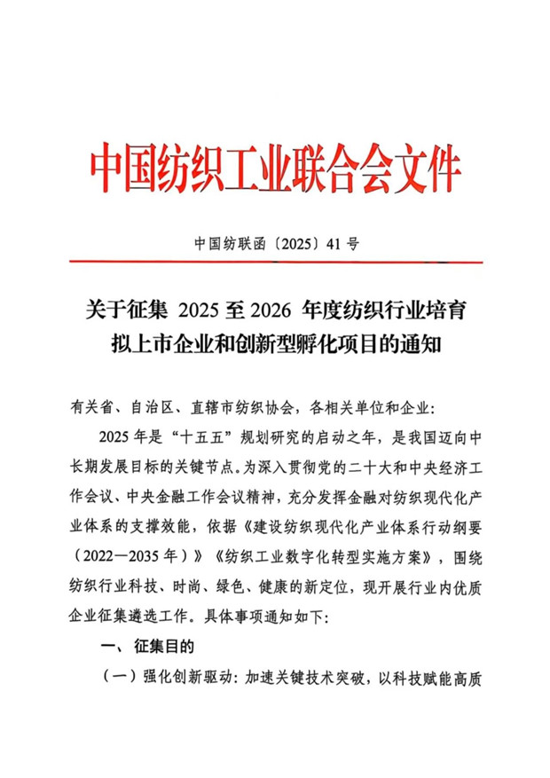 关于征集2025至2026年度纺织行业培育拟上市企业和创新型孵化项目的通知