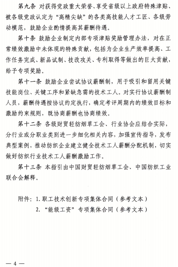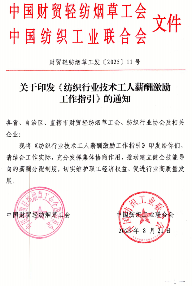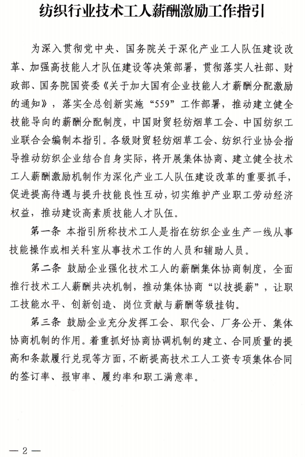 关于印发《纺织行业技术工人薪酬激励工作指引》的通知