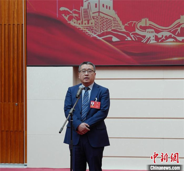 图为内蒙古自治区政协委员程晓虎在2025年内蒙古自治区两会期间参加委员通道采访。 张鑫 摄