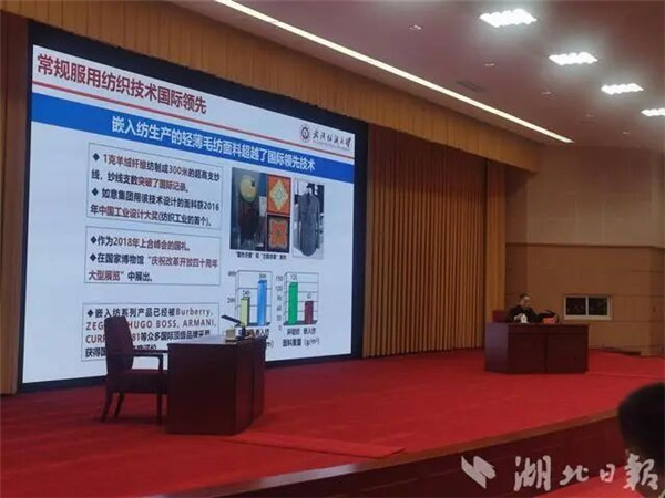 报告中,徐卫林教授围绕文明演进、国际贡献、强国支撑、未来展望四个维度,从古代丝绸之路中纺织贸易承载的文明交流使命,到现代航天领域纺织材料发挥的关键支撑作用;从纺织科技在科技强国战略中的核心地位,到其为湖北纺织产业转型升级提供的技术路径,深入阐释了纺织科技与人类发展、国家战略、地方产业的紧密关联,提出对湖北纺织产业的发展思考,为推动全省科技创新与产业升级注入新的思路与活力。(摄影:包东喜)