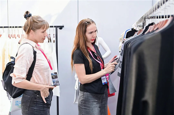 参展商与采购商愉快洽谈,交流声、欢笑声交织,现场处处洋溢着合作共赢的热烈氛围,尽显纺织产业蓬勃生机。