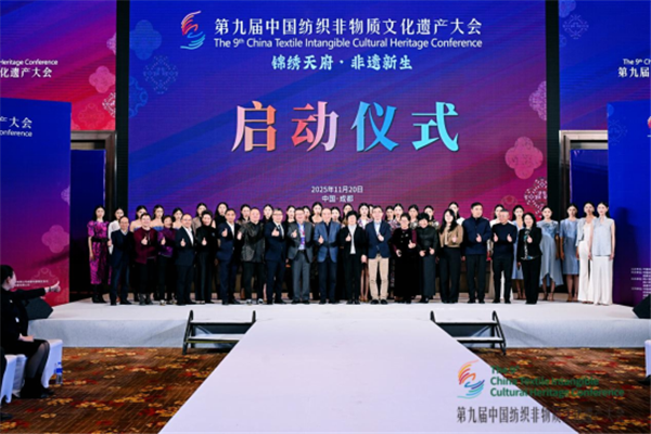 伴随着华灯初上,11月20日晚,第九届中国纺织非物质文化遗产大会启动仪式隆重举办。本届大会由中国纺织工业联合会主办,中国纺联非遗办与成都纺织高等专科学校承办,以“锦绣天府·非遗新生”为主题,汇聚行业精英、非遗传承人、高校学者与设计师等领军人物,深入探讨“非遗+教育+产业”的融合路径,激活青年一代的创造力,共议纺织非遗在当代语境下的传承路径与产业未来。