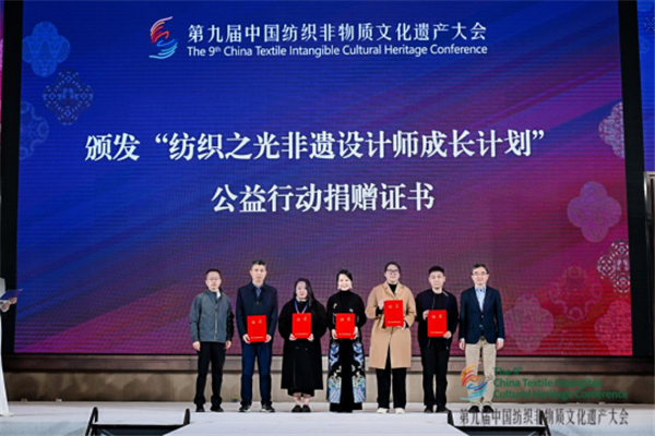 启动仪式上,还颁发了“纺织之光非遗设计师成长计划”公益行动捐赠证书,不仅是对无私奉献者的崇高致敬,更是对全社会形成“关注非遗、支持创新”良好风尚的积极引导与荣誉见证,让传承之路因更多人的点亮而愈发宽广。