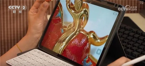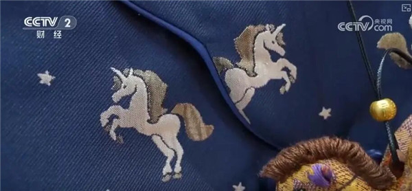 企业负责人张国权介绍,结合真丝、金银丝等各种素材,把它组合在一起。这一款是“马到成功”,还有“龙马精神”“一马当先”。团队设计出来之后,他们经过配色,体现在绸面上,给客户一个丰富的多彩世界。