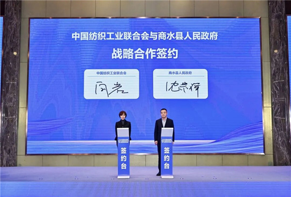▲中国纺织工业联合会与商水县人民政府签署战略合作协议