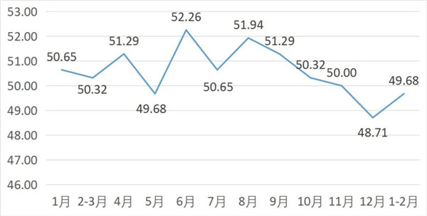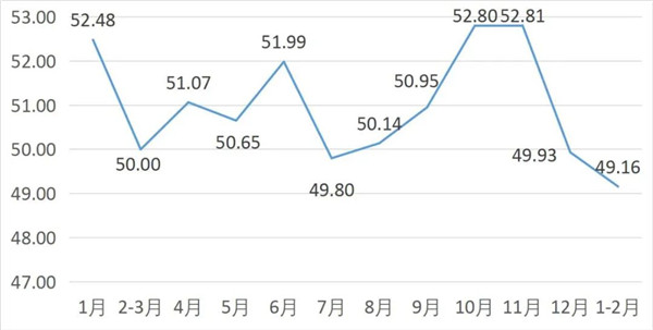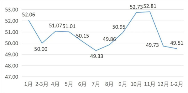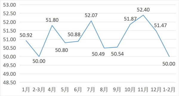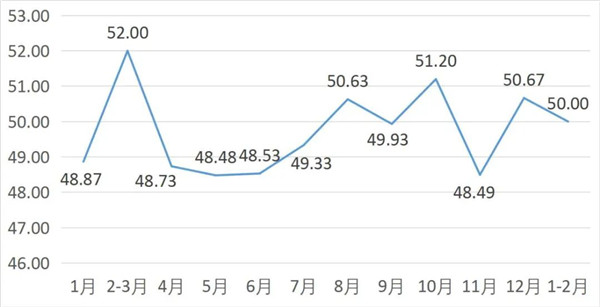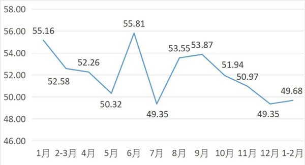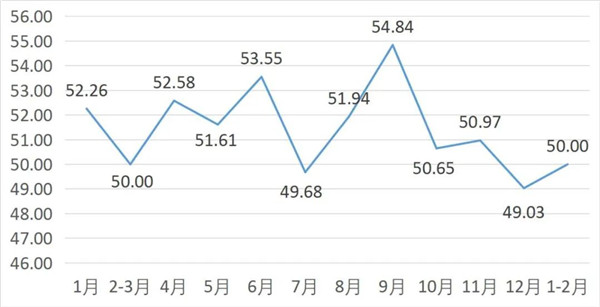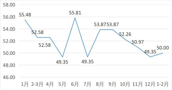 从管理者景气指数来看,总指数中,1-2月管理者景气指数为19.95,较上期上升0.65个百分点;经营环境指数为50.00,较上期下降0.65个百分点。