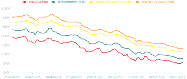 表1 2025年以来化纤主要产品及原料价格变化资料