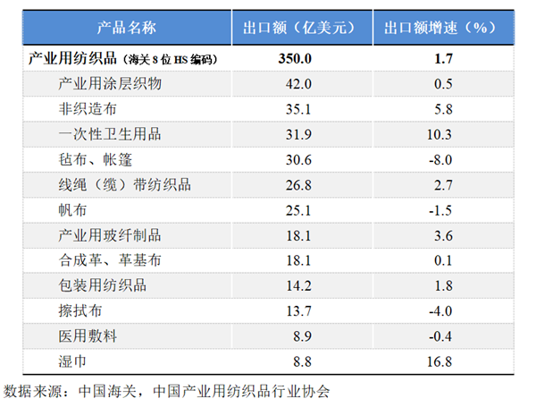 国际贸易方面,根据中国海关数据(海关8位HS编码统计数据),2025年1-10月我国产业用纺织品行业的出口额为350亿美元,同比增长1.7%;行业进口额为45.5亿美元,同比增长4.3%。