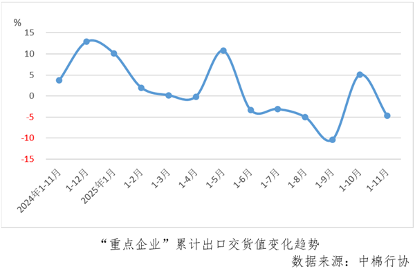 1-11月份“重点企业”出口交货值同比下降4.7%,由上月累计增长再次转为下降。