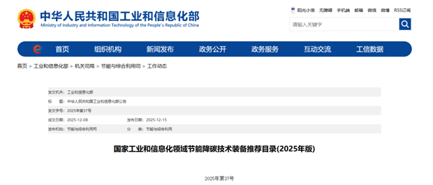 为贯彻落实《国务院办公厅关于印发〈制造业绿色低碳发展行动方案(2025-2027年)〉的通知》(国办发〔2025〕21号),加快推广节能降碳先进技术,加强重点行业领域技术改造升级和大规模设备更新,现将《国家工业和信息化领域节能降碳技术装备推荐目录(2025年版)》予以公告。