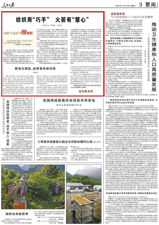 记者在细纱车间自动值车区看到,过去需要12名工人3班倒运作的70多台细纱机,如今一名老师傅带着4个“徒弟”即可轻松管理,劳动强度降低30%、生产成本下降11%、生产效率提升15%。“数智化转型后,生产出的高支纱产品可满足国内外各大品牌需求,还助力我们开发自主品牌。”蔡赟说,坚持智能化、绿色化、融合化方向,无锡高端纺织服装产业集群规模超2000亿元。