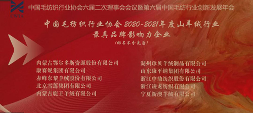 中国毛纺织行业协会副秘书长张书勤宣读了《2020-2021 年度中国毛纺织行业协会山羊绒行业竞争力测评结果》。
