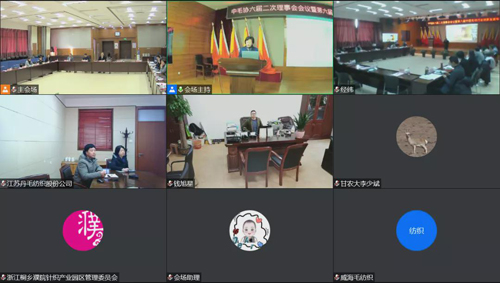 1月12日,中毛协六届二次理事会会议暨第六届中国毛纺行业创新发展年会视频会议在北京召开。由于疫情防控要求,本次会议采用线上+线下结合的方式召开,分1个主会场和12个分会场,主会场设在北京雪莲集团有限公司会议室。