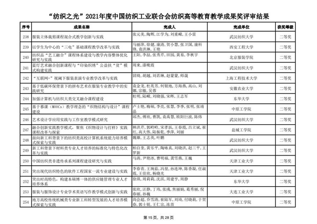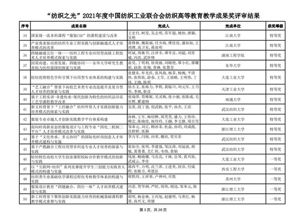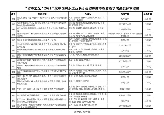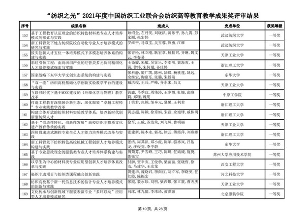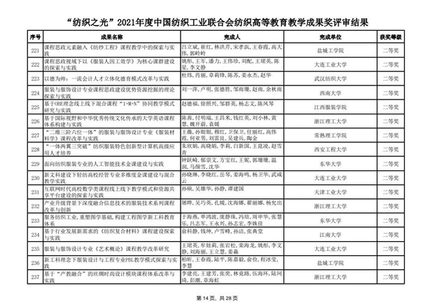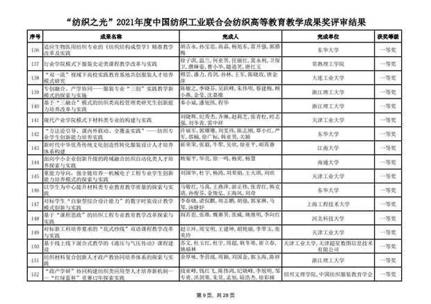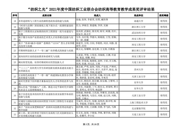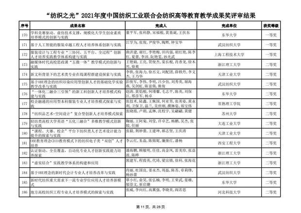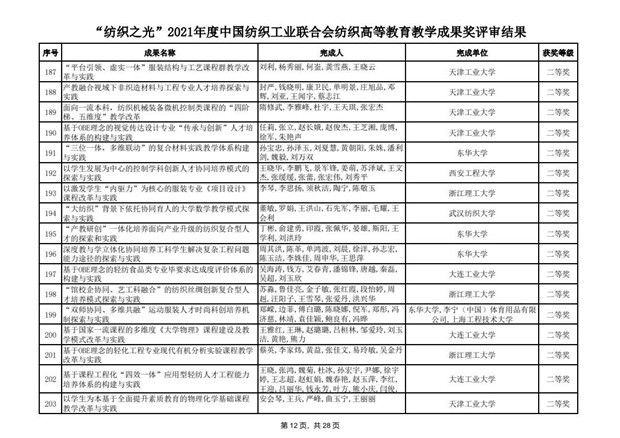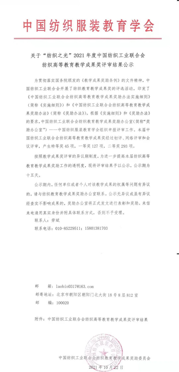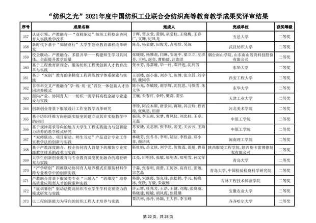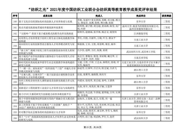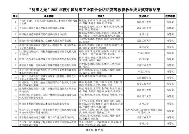 关于“纺织之光”2021年度中国纺织工业联合会纺织高等教育教学成果奖评审结果公示