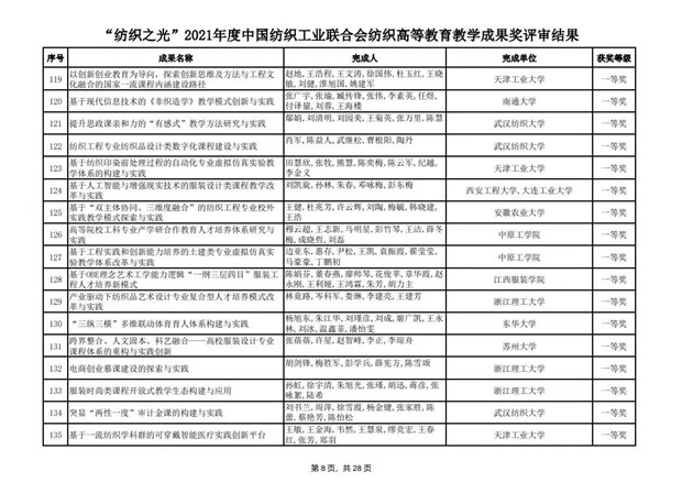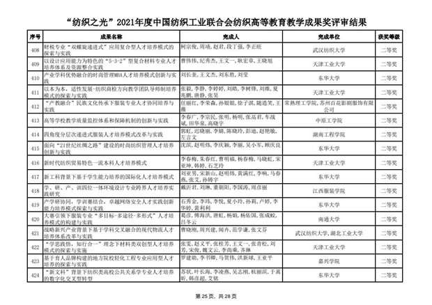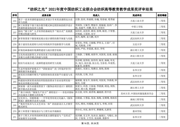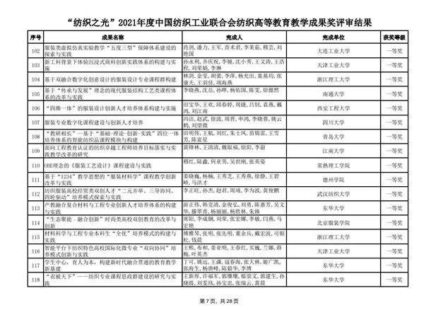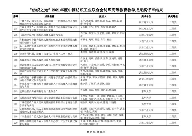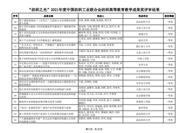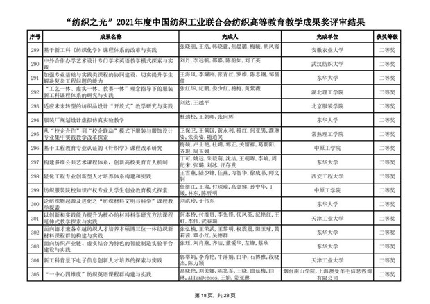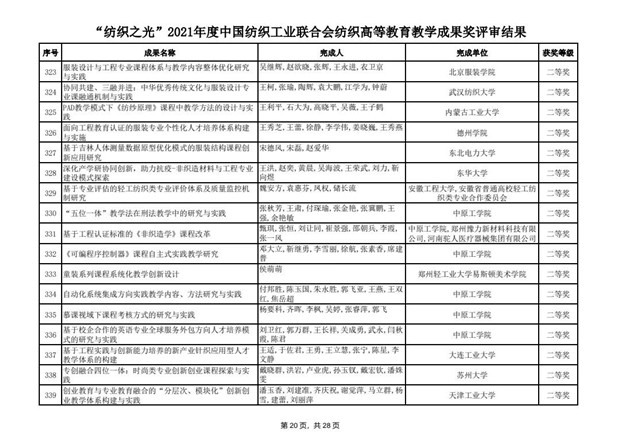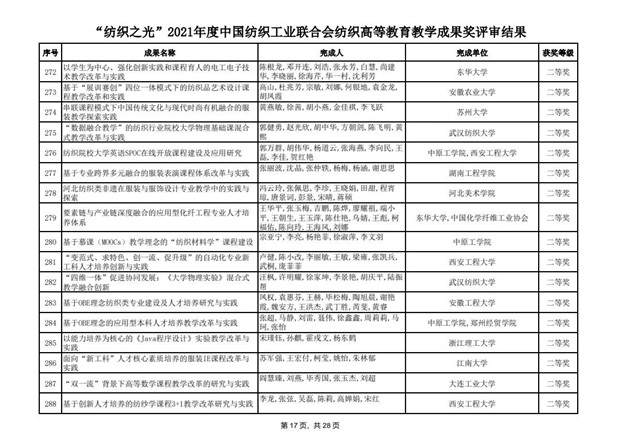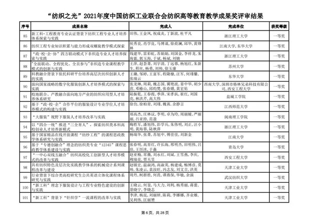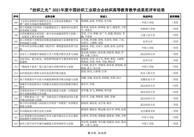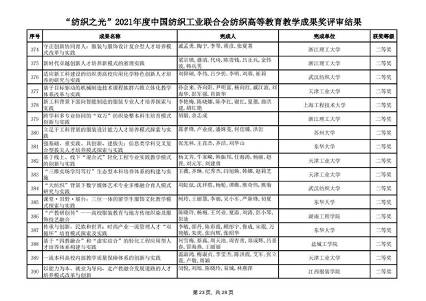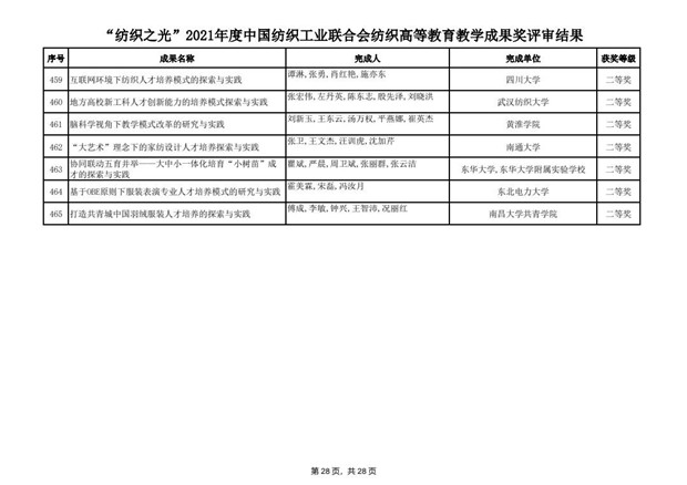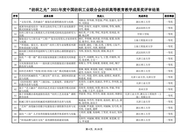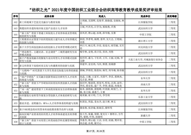 关于“纺织之光”2021年度中国纺织工业联合会纺织高等教育教学成果奖评审结果公示