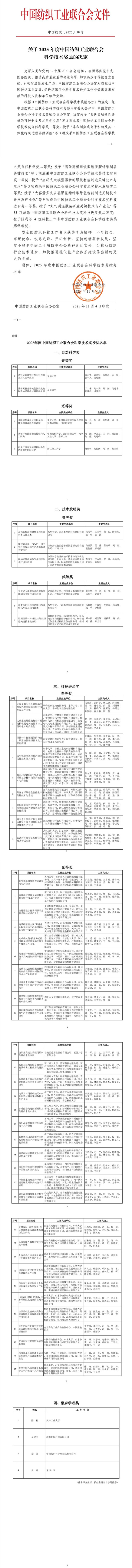 2025年度中国纺织工业联合会科学技术奖励的决定