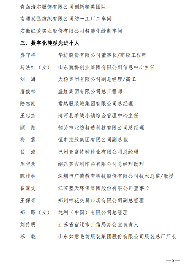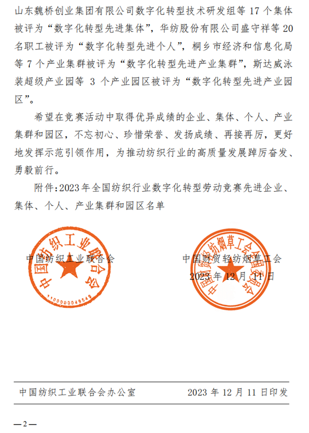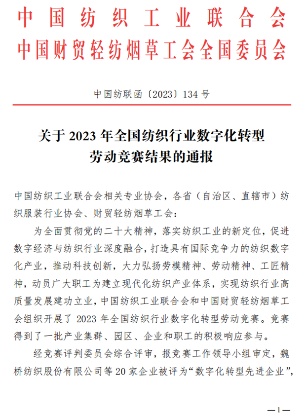 关于2023年全国纺织行业数字化转型劳动竞赛结果的通报