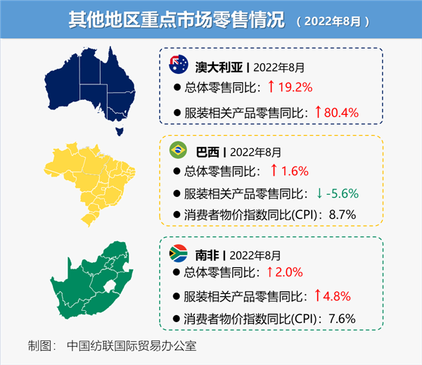 8月巴西CPI同比增长8.7%,较上月下降0.4%,连续两个月出现收缩。当月巴西服装价格涨幅较大,织物、服装和鞋类零售额环比增长13%,同比下降5.6%。