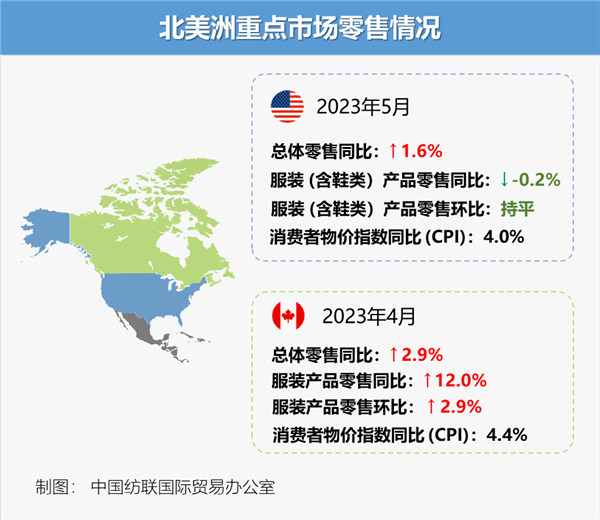 2023年4月,加拿大通胀率在连续10个月呈现下行趋势后首度上升至4.4%,较上月高出0.1个百分点。当月,加拿大零售总额同比增长2.9%;服装类用品零售额为29.3亿加元(约22.3亿美元),环比增长2.9%,同比上升12%。