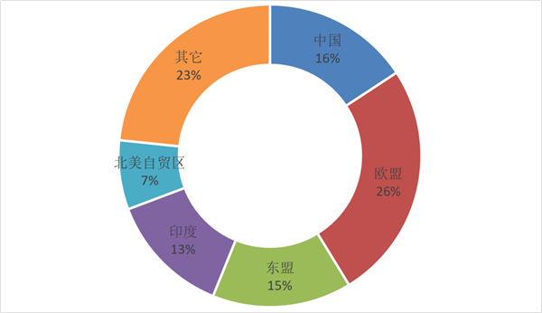 1-9月,美国进口毛纺产品总额31.2亿美元,同比增长1.8%。对除中国外的毛纺产品主要进口地普遍呈现增长,从欧盟、东盟、印度等地进口额同比分别增长0.7%、73.2%和14.1%。从中国进口额同比下跌33.1%,份额也再次下跌至16%。