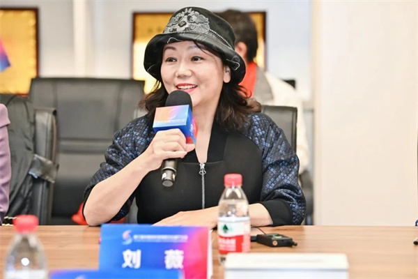中国纺织非遗推广大使、项目公益大使、金顶奖设计师刘薇介绍了项目第一年度成果转化作品,并鼓励参会的非遗相关专业的高校师生要将所见所闻所学转化为从业实践,学以致用、活学活用。