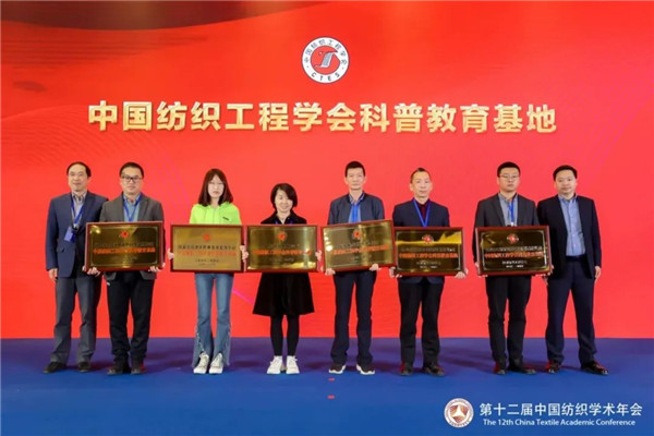2022年,学会新设了6个中国纺织工程学会科普教育基地,新设立4个中国纺织工程学会科研基地,新设中国纺织工程学会科学家精神教育基地(第一批),4家单位入选。会议为入选基地颁发牌匾。