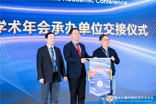 大会决定,第十三届中国纺织学术年会将于2023年11月由苏州大学承办。中国纺织工程学会理事长伏广伟与天津工业大学纺织科学与工程学院院长刘雍、苏州大学纺织与服装工程学院院长张克勤进行了交接仪式。