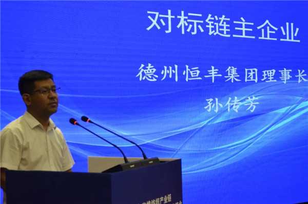德州恒丰集团理事长孙传芳发布了新型材料、下游客户、企业融资、人才引进、上市对接、产业集群等方面的链主需求。德州恒丰集团是一家集新型纱线面料研发、纺织贸易、仓储物流、产融互动、管理咨询等为一体的大型民营企业集团,主要产品为特种纤维纱线、羊绒精纺纱线、服装面料等,建立了标准化产品研发体系、联盟式企业管理体系。