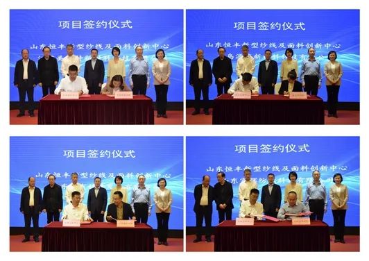 江苏美佳特新材料科技有限公司、青岛源海新材料科技有限公司、山东稀有科技发展有限公司、山东富辉纺织科技有限公司分别与山东省新型纱线与面料创新中心签约。