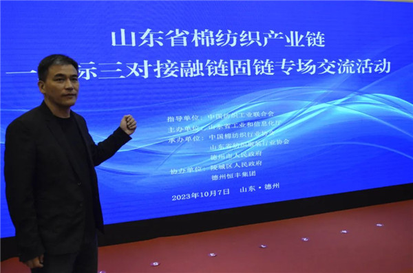为推动产业链上下游大中小企业融通发展,受山东省工业和信息化厅委托,10月7日,山东省纺织服装行业协会组织行业优质企业与产业链链主企业德州恒丰纺织集团,在德州成功举办了山东省棉纺织产业链一对标三对接融链固链专场交流活动。