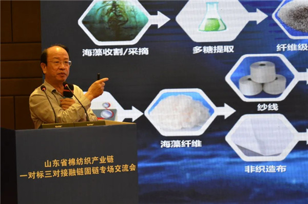 生物多糖纤维成形与生态纺织国家重点实验室主任夏延致作《青岛大学海洋纤维新材料研究院海藻纤维项目介绍》