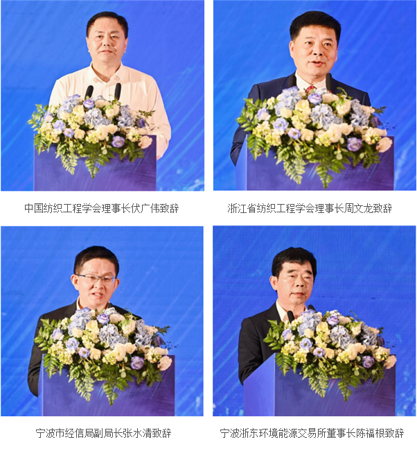 中国纺织工程学会理事长伏广伟、浙江省纺织工程学会理事长周文龙、宁波市经济和信息化局副局长张水清、宁波大学副校长姚菊明、宁波浙东环境能源交易所董事长陈福根、浙江大学产业经济研究所执行所长李建琴等一众行业专家、领导及100余名企业家代表出席论坛。