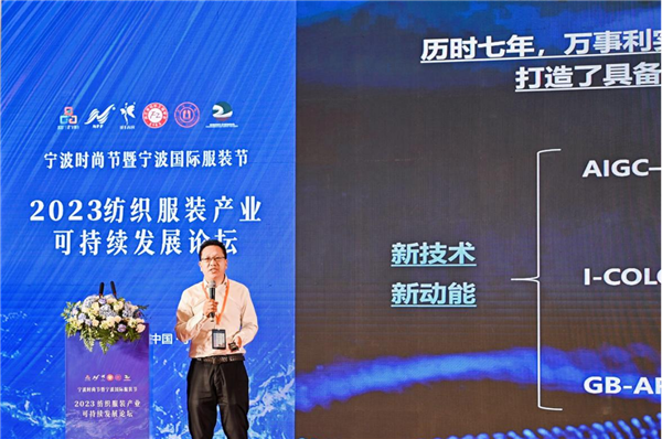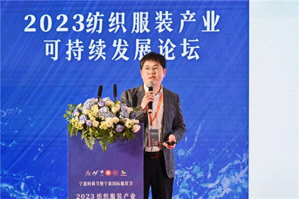 论坛期间,浙江理工大学服装学院教授王来力作《时尚产业绿色低碳标准与应用》主题报告,宁波浙东环境能源交易所副总经理江鑫分享了《国际绿色贸易趋势下纺织业应对策略》,杭州万事利丝绸科技有限公司总经理马廷方分享了《数码印花免水洗关键技术的产业化应用——GBART数字化印染一体机》,瑞晟智能AI数字孪生项目负责人夏志峰分享了《AI数字孪生赋能柔性制造服装生产》。