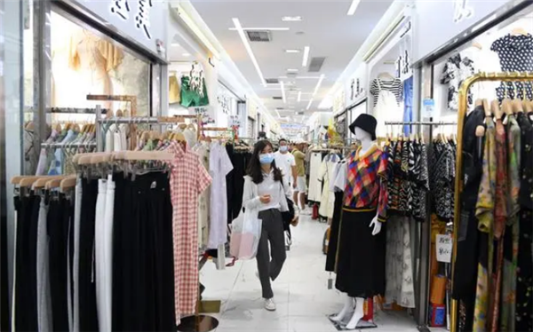 客商在广州市十三行广场里选购服装(6月13日摄)。新华社记者 卢汉欣 摄