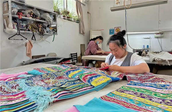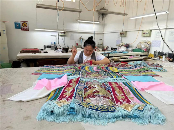 承做是戏服制作中的一道工艺,除了将裁好的衣片缝合成衣,还包括沿边儿、盘扣儿、上扣儿等环节。一根针、一把尺、一台缝纫机……进厂14年来,田朝辉凭借踏实肯干、勤奋好学的精神不断提升承做技艺,制作出一件件质量上乘的戏服,在剧装制作技艺的传承中发挥着骨干作用。