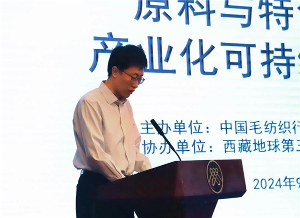 刘克在致辞中介绍,中国纤维质量监测中心,是国家市场监督管理总局直属的正司局级事业单位,致力于构建科学、公正的纤维质量监测工作体系,负责组织实施包括棉花、毛、绒、茧丝、麻类等纤维在内的质量公证检验任务。始终以守牢纤维产品质量安全底线,维护规范有序的纤维市场秩序,驱动纤维产业高质量发展,增强中国纤维产品在全球市场的竞争优势作为中心的职责使命。2023年,中纤中心联合中毛协对西藏、青海、甘肃、四川及云南等牦牛绒主产区的特色毛纺原料进行调查,对重点质量指标进行监测,全面掌握了我国牦牛绒资源分布与质量水平。在接下来的工作中,中纤中心将与政府相关部门密切沟通,协调将牦牛绒纳入国家公证检验体系范畴,从国家层面对牦牛绒产品给予质量检验的政策支持与经费保障。通过对牦牛绒纤维质量实施国家公证检验,进一步有效提升产品的标准化与规范化水平,增强市场竞争力和品牌影响力。通过构建更加公正公平的市场竞争环境,促进牦牛绒产业技术革新与升级,为牦牛绒产业的可持续发展注入强劲动能。