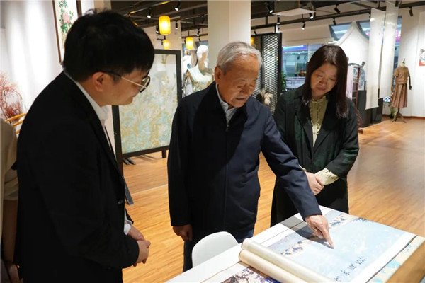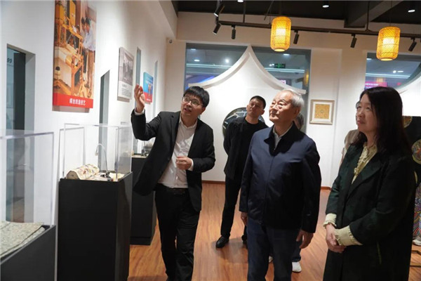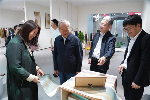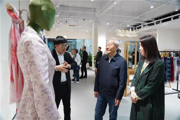 在杭海面辅料中心,杜钰洲一行先后考察了“中纺瓅锦·承创空间”和家纺城纺织非遗创意馆,通过贺荣的引导和介绍,详细了解创意馆等平台建设、纺织面料和文创产品研发生产、校企合作等方面所取得的阶段性成果,并给予了积极肯定。调研过程中,杜钰洲结合馆内产品,对产品色彩的搭配、许村织锦技艺的运用以及品牌塑造和市场营销等提出了宝贵意见和建议。杜钰洲表示,市场要及时精准把握产业发展趋势,通过与时俱进和不断创新,实现自身发展优势的巩固和价值的提升;要进一步发挥市场优势,做好对优质资源的有效链接和整合运用,更好实现对产业创新发展的支持和助力。
