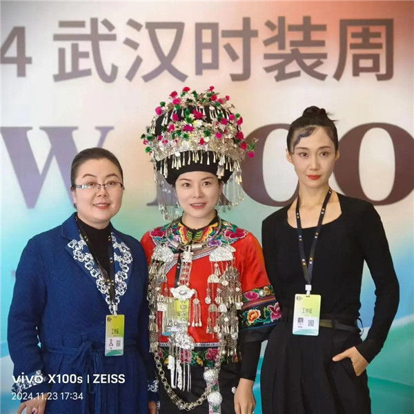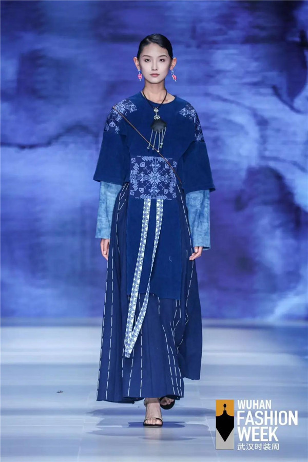 江城武汉主导的本次非遗盛会,秉承了传统与时尚结合的理念,以T台为载体展示,模特们身着精美的非遗服饰,尽显传统与时尚融合之美。这些服饰设计既有浓郁的民族风情,又不失时尚感,给参会人员带来了一场饕餮盛宴。湘西苗族挑花蓝染服饰成为全场亮点,挑花纹样精美绝伦,每一朵花、每一只鸟都仿佛在诉说着苗族古老的传说,寄予着创新发展的希望。据悉,此次亮相的湘西苗族挑花蓝染服饰系列作品,由武汉纺织大学服装学院王妮副教授带领的团队设计完成。设计师以独特的创意,将湘西泸溪苗族挑花传统技艺、荆楚蓝染传统技艺与现代礼服设计进行融合,对传统技艺进行了一次完美诠释。