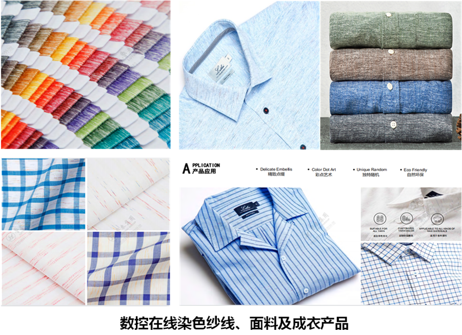 该项目提出的纱线数控在线染色技术相较于传统纱线染色,具有无盐、少水、快速和低耗的绿色环保优势,所用纱线无需炼漂前处理,其用盐量降低100%、用水量降低62.5%、助剂用量降低80%、能耗降低70%且染色成本降低40%以上,染色加工速度最高可达1000m/min,可适用于超高支纱的染色(最高可达100s),且广泛适用于棉、麻、莱赛尔等纤维素纤维及涤纶、尼龙等化学纤维,有效解决了纺织纤维材料在染色生产中存在的污染严重和能耗高等关键问题,攻克了聚乳酸、二醋酯等新型难染纤维常规染色降强大、难以染色的行业技术难题,实现了高效低碳绿色染色技术创新和智能染色装备研制及其产业化应用,生产的纱线面料产品花色多样且风格独特。项目的实施符合《国民经济和社会发展第十四个五年规划和2035年远景目标纲要》和中国纺联《纺织行业“十四五”发展纲要》的目标要求,对纺织行业的绿色高质量发展和纺织产品迈向全球价值链中高端具有积极的推动和示范作用,可有力推动我国制造强国质量强国目标的实现。