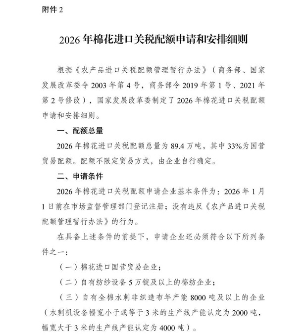 2.2026年棉花进口关税配额申请和安排细则国家发展改革委2025年9月29日