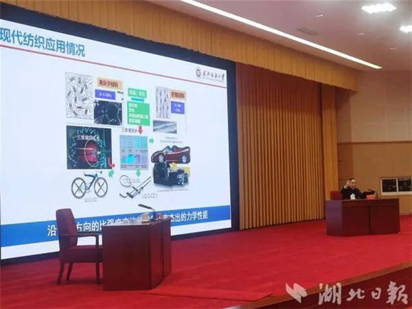 报告中,徐卫林教授围绕文明演进、国际贡献、强国支撑、未来展望四个维度,从古代丝绸之路中纺织贸易承载的文明交流使命,到现代航天领域纺织材料发挥的关键支撑作用;从纺织科技在科技强国战略中的核心地位,到其为湖北纺织产业转型升级提供的技术路径,深入阐释了纺织科技与人类发展、国家战略、地方产业的紧密关联,提出对湖北纺织产业的发展思考,为推动全省科技创新与产业升级注入新的思路与活力。(摄影:包东喜)