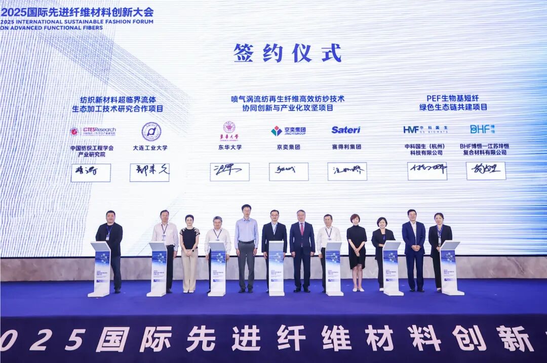 面对绿色制造升级、智能化转型、高端市场突破等多重任务,聚焦产业链上下游的协同创新,本次大会举行了11个重点项目签约仪式,覆盖低碳材料研发突破、纺纱技术创新、功能性面料升级、人工智能赋能制造等关键方向。