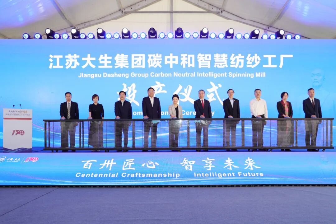 南通市委副书记、市长张彤;中国纺织工业联合会党委书记、会长孙瑞哲;中国恒天集团党委书记、董事长金永传;江苏省苏豪控股集团党委书记、董事长,江苏省纺织工业协会会长周勇;南通市人大常委会副主任、市总工会主席王少勇;南通市人民政府副市长凌屹;中国纺织工业联合会副会长阎岩;中国科学院院士朱美芳;张謇曾孙、江苏省人大常委、南通謇文化科技发展有限公司董事长张慎欣;大生集团党委书记、董事长漆颖斌共同启动了碳中和智慧纺纱工厂投产仪式。