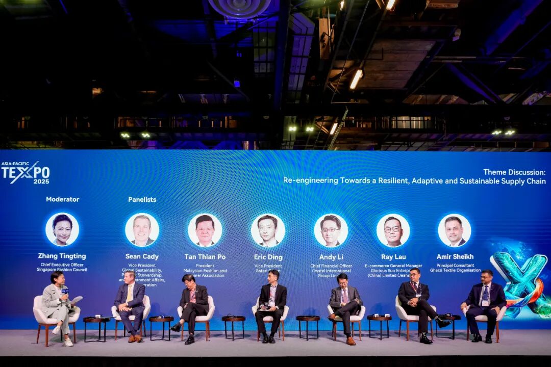 主题圆桌会由新加坡时尚协会CEO张婷婷主持,威富集团全球可持续发展、责任、贸易及政府事务副总裁Sean Cady,Asia Brands Berhad主席Tan Thian Po,赛得利集团副总裁丁港,晶苑国际集团首席财务官Andy Li,旭日商贸(中国)有限公司副总经理兼真维斯电贸总经理刘伟文,Gherzi咨询(印度办公室)首席顾问Amir Sheikh,六位嘉宾围绕“共筑灵活、弹性、可持续的纺织服装供应链体系”这一主题,探讨如何通过协同创新与战略调整,构建面向未来的供应链体系。