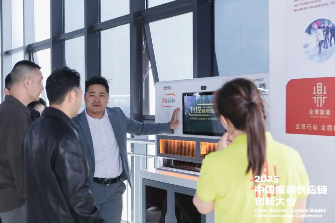 在会议现场,霞湖世家、金鼎智造、蓝森林服装、维晋服装、维晋服装、元一智造、莉星服饰、华沙利科技、金大坂、清禾服饰、博浩制衣、俊羽服饰、久和服饰、银轩智造等十余家企业的静态展位,更是吸引了一众领导和嘉宾们的驻足咨询。动静结合,展现着中山供应链在精益生产、敏捷制造与技术创新上的扎实积累。让与会者能够亲身感受中山服装供应链的先进制造能力与创新活力,进一步理清产业的未来图景。