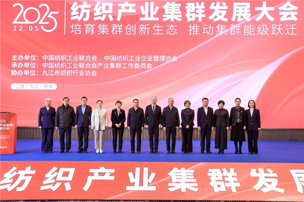 在此背景下,2025纺织产业集群发展大会于12月5日在江西九江德安隆重召开,会议以“培育集群创新生态 推动集群能级跃迁”为主题,国家相关部委领导、国家级行业协会领导、知名专家学者、省级工信部门领导、产业集群代表、企业代表及媒体代表200余人汇聚一堂,共商以数字化为关键路径,推动纺织产业集群迈向现代化治理与全球价值链高端的新篇章。