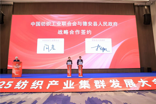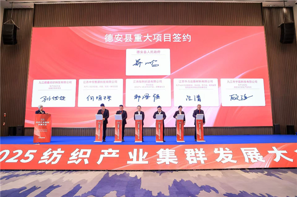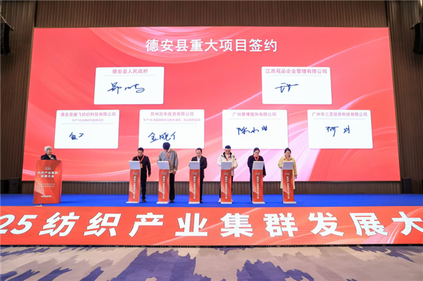 此外,在与会嘉宾的见证下,中国纺织工业联合会与德安县人民政府签署战略合作协议。此次合作是国家级行业力量赋能集群地区产业升级的重要举措,未来双方将聚焦德安纺织产业,以技术创新为引擎、集群生态优化为支撑,共探县域纺织产业高质量发展新路径。现场亦有一批重大项目落地德安,将进一步夯实其产业集聚发展基础。
