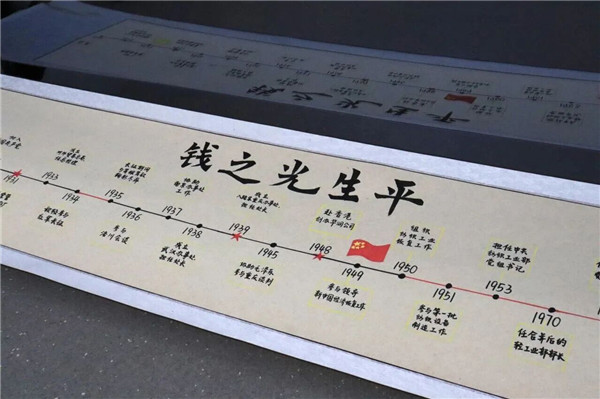 思想的交流激荡出智慧的火花,而情感的共鸣则催生了艺术的创造。活动中,团员们精心手绘的钱之光生平卷轴徐徐展开。画卷之上,从青年时代投身革命洪流的昂扬身影,到中年时期主持纺织工业建设的坚毅身姿,再到晚年仍伏案钻研技术、心系行业发展的执着背影,每一笔线条都饱含深情,每一幅场景都凝聚敬意。这逐帧勾勒的人生轨迹,将先生“把毕生精力献给党和人民”的坚定信念具象化、立体化,使其形象愈发饱满而崇高。